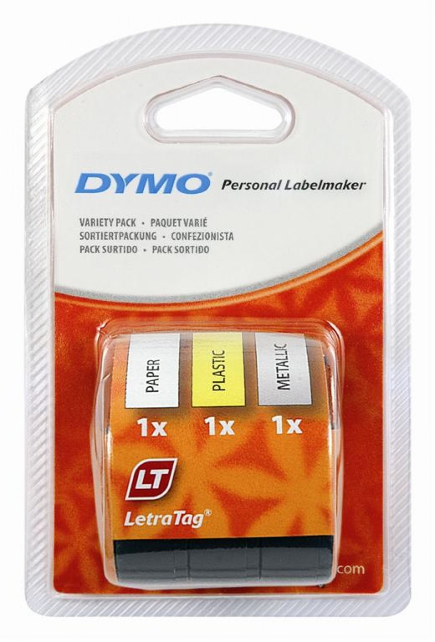 The Dymo LetraTag Paper / Plastic / Metallic Multi Pack contains 3 plastic tapes - White Paper, Yellow Plastic,Silver Metallic and is the perfect starter kit